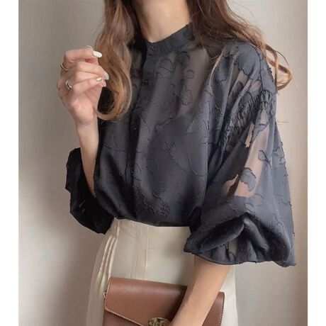 -透け感が上品で華やかな立体感が映えるジャガードブラウス