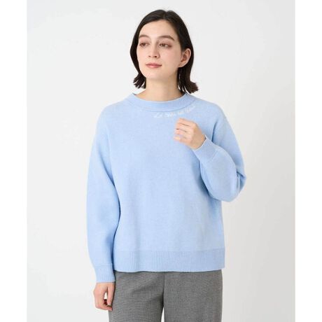 スポンディッシュな糸をダブルジャカード編みした柔らかな肌触りのスウェットライクニットです。ゆったりリラックスサイズでボディラインを拾わず、後ろ丈が少し長くなっているので気になるヒップラインをカバーしてくれます。後ろ身頃の裾にスリットが施されたバックテールデザインもポイントで、後ろ姿まで抜かりなく可愛い一枚です。スウェットのようなほどよい膨らみとハリで立体感のあるニットです。襟元には「La Terre est bleue:ラ テール ブルー(青い地球)」という意味の刺繍をワンポイントに入れています。