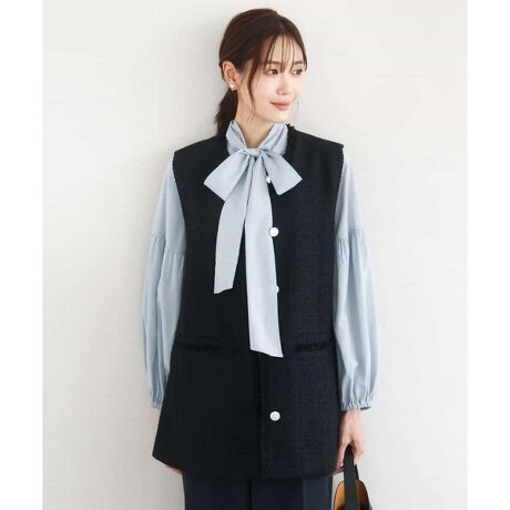 いつものコーデにさっと羽織るだけでサマになるジレはあると便利なアイテムのひとつ。ツイード素材はコンパクトなニットやデニムに合わせたカジュアルコーデにはもちろん、華やかなブラウスの上に重ねて入卒のセレモニーシーンにまで幅広く着回せます。