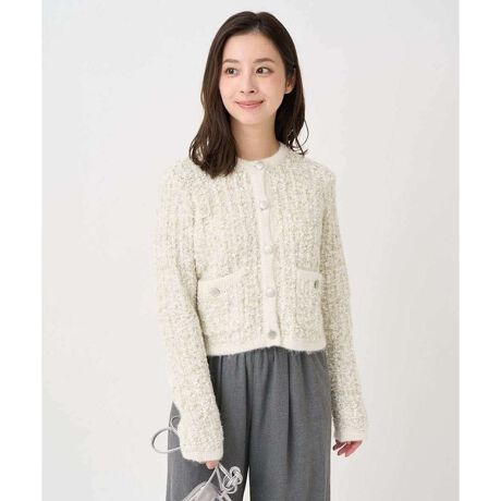 やわらかで着心地の良い華やかツイードニットの羽織り