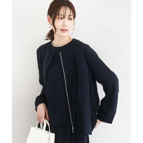 同素材のブラウス、パンツもご用意しているので、組み合わせてセットアップでの着用も楽しめます。カーディガン感覚で着用できるので前を開けてさらっと羽織るのもおすすめです。ファスナーを閉めるとブラウスとして、一枚でトップスとしてのコーディネートも◎