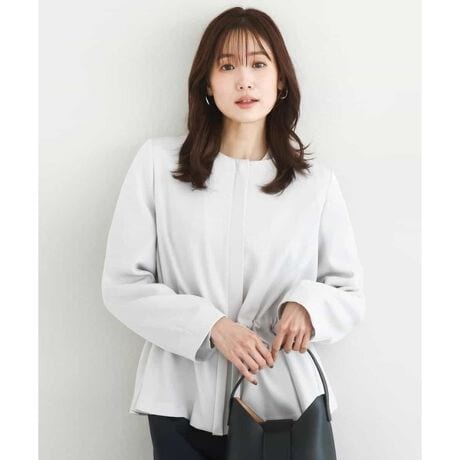 同素材のブラウス、パンツもご用意しているので、組み合わせてセットアップでの着用も楽しめます。カーディガン感覚で着用できるので前を開けてさらっと羽織るのもおすすめです。ファスナーを閉めるとブラウスとして、一枚でトップスとしてのコーディネートも◎