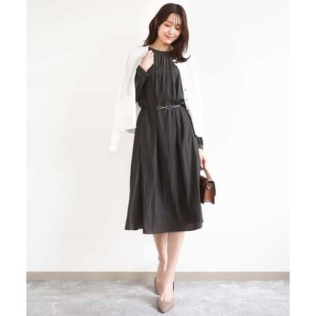 ベルトでウエストを絞って、お好みのシルエットに調節も可能。一枚で上品に、ジャケットやカーディガンを合わせても素敵に決まります。