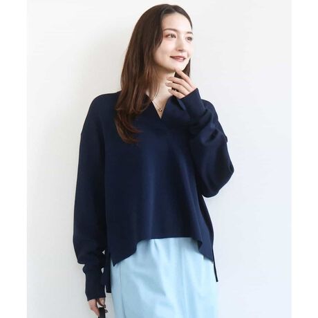 トレンドの衿付きラガーニット。ゆとりのあるサイズ感ながら、ボクシーなシルエットとコンパクトな丈感がすっきりと着こなせます。