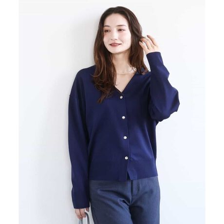 女性らしいVネックラインとシルバーのドット釦でカジュアルにもきれいめにもコーディネートしやすいニットカーディガン。適度なハリのある素材は程よいボリューム感が出て立体的なシルエットに。ホワイトのみボーダー配色になります。