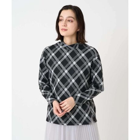 オフタートル風のハイネックはほどよくゆとりのあるサイズ感でリラックスして着用いただけます。へリンボン柄のラインジャガードがジョルジュ・レッシュらしいシャープさを演出してくれます。裾にはスリットが入っているので、ボリュームのあるボトムに合わせた時にすっきりと着用できます。しっかりとした生地感のカットソーなので、一枚でさらっと着やすく着回しの効くアイテムです。