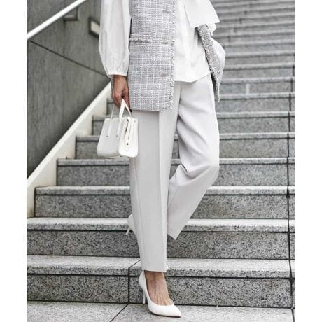 同素材のジャケットをご用意しているので、スーツセットアップとしての着用も可能。きれいめパンツは、毎日のお仕事など普段使いから、入学式や卒業式のセレモニーシーン、ちょっとした行事ごとにも活躍してくれます。