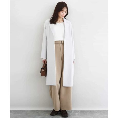 ロング丈のアウターはコーディネートを選ばずにさっと羽織りやすいところが魅力的。お仕事からお休みの日まで、何かと頼りたくなる万能アウターです。
