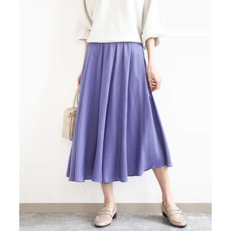 ブラウスをボトムにインしてきれいめに、Tシャツとさらっと合わせてカジュアルに。合わせるトップスや靴を選ばないボトムは汎用性◎。同素材のブラウスとセットアップでワンピース見えの着こなしも楽しめます。