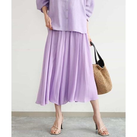 ブラウスをボトムにインしてきれいめに、Tシャツとさらっと合わせてカジュアルに。合わせるトップスや靴を選ばないボトムは汎用性◎。同素材のブラウスとセットアップでワンピース見えの着こなしも楽しめます。