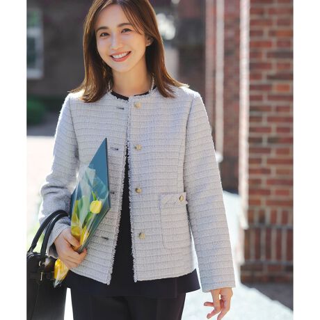 多様なシーンで着回し可能な華やぎツイードジャケット