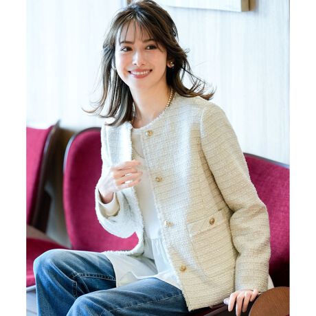 多様なシーンで着回し可能な華やぎツイードジャケット