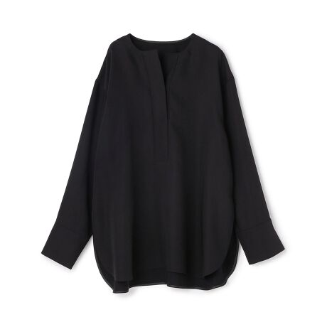 ■デザインオーバーサイズのシルエットがモードな印象のノーカラーブラウス。ゆったりとしたサイズながら落ち感のある素材で広がりすぎず、抜け感のあるスタイルが叶います。ミニマルなデザインながら、大きめのカフスと深めのスリットがアクセントになるので、さっぱりしすぎない印象に。同素材のボトムとセットアップでの着用もおすすめです。・ドライダブルクロス タックテーパードパンツ(PRURLS0101)・ドライダブルクロス イージーワイドパンツ(PRURLS0102)