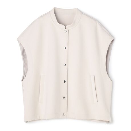 ■デザインふっくらと軽い着心地のBEAUTYFORM素材を使用した、気負わず羽織れるスタジャン風デザインのジレ。ゆったりとしたシルエットや後ろのヨーク切り替えで、フォルム感のあるアイテムです。裾に配したスピンドルを絞ることで、お好みに合わせてシルエットを変えられます。ヒップラインが隠れる長めの着丈なので、体型カバーも叶えます。TシャツやロンTにさっと羽織るだけで、普段のコーディネートが一気に鮮度UPします。