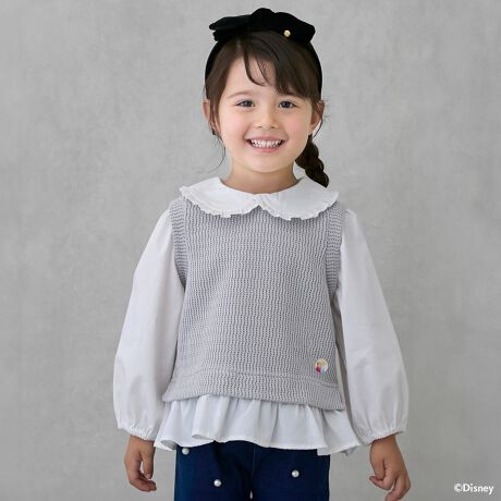 ニットベストとの重ね着コーデを楽しめるドッキングデザインのトップスです。