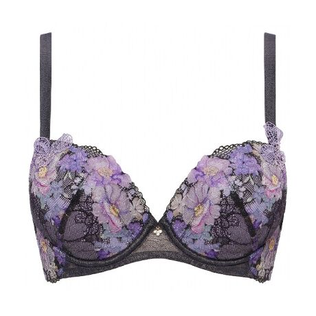 ガーベラやネモフィラなどの鮮やかな花々をモチーフにしたプリントのストレッチレースに、リボンモチーフのアップリケを使用した、フェミニンなシリーズです。