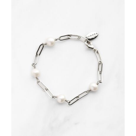 着けるだけでスタイリングをリュクスでスタイリッシュにアップデートできる、シンプルな淡水パールチェーンブレスレット。チェーンは一コマずつがモダンなフォルムで抜け感があるデザインのものをチョイス。天然の淡水パールをひとつずつ丁寧にワイヤーで巻き、全体に散りばめていて、洗練されたノーブルなたたずまいと華やかさを兼ね備えます。