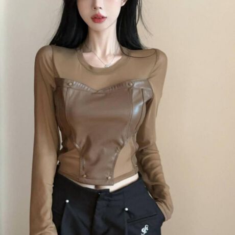 【シアー切替フェイクレザートップス】