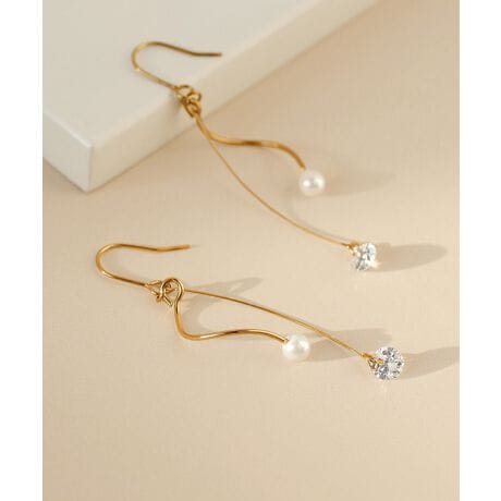 揺れるたびに煌めくパールとビジューが、横顔に華やぎをプラスするピアス。