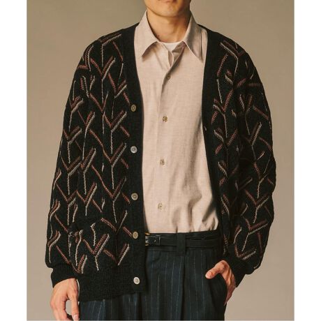 [型番:25080312506130]立体感のある表情と色味が特徴のアイテム。羽織るだけでアクセントになる仕上がりで、レイヤードアイテムとしても使い勝手の良いカーディガンです。