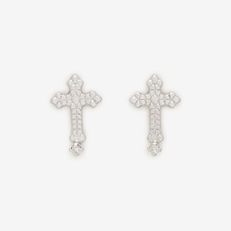 ダイヤモンドをあしらったクロスモチーフが、繊細に輝くホワイトゴールドのピアス。