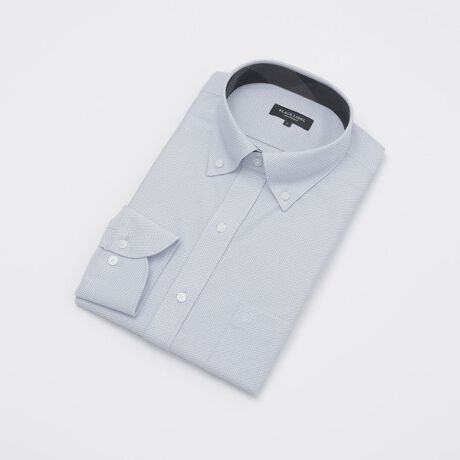 素材には、トリコットカラミ調の素材を使用。ストレッチ性・防シワ性・吸水速乾性に優れたイージーケア素材であり、涼しげな表面感とさわやかな肌触りが最大の特徴です。湿度の高い日でもサラサラとした肌触りを実感でき、着用時や洗濯後のシワを軽減する為、出張時にも最適です。