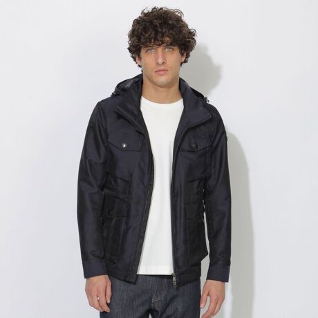 ミリタリーアウターの代表格であるM65をアイコニックなジャカード素材でアレンジした一着。フード裏と背裏にクレストブリッジチェック裏地を使用しながらも、袖の裏地等を省くことで非常に軽量に仕上げました。軽さと高級感を兼ね備えた「METALUXE(R)」ファスナーを随所に配し、スタイルに洗練された印象を添えています。大ぶりなパッチアンドフラップディテールの本格的な仕様に加え、フード取り外しが可能な2WAY仕様で、スタンドブルゾンとしても着用が可能です。
