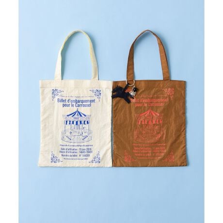 ■素材・デザイン・メリーゴーランドのチケットをイメージしたオリジナルプリントが魅力のトートバッグ。・遊び心あふれるデザインで、日常のコーディネートにさりげないアクセントを加えます。・お出かけやショッピング、旅行のサブバッグとしてもおすすめの実用的でおしゃれなトートバッグです。・吊りポケットに本体をコンパクトに折りたためるポケッタブル機能搭載。 (トートの横幅を3つ折りにして、次に縦を4つ折りにして、小さく畳むことで吊りポケットに収納できます。)・軽量で使いやすく、急な荷物にも対応可能。・A4サイズも収納可能なサイズ感。肩に掛けやすい長めのハンドル。・持ち運びやすく、バッグの中に入れてもかさばらない設計です。