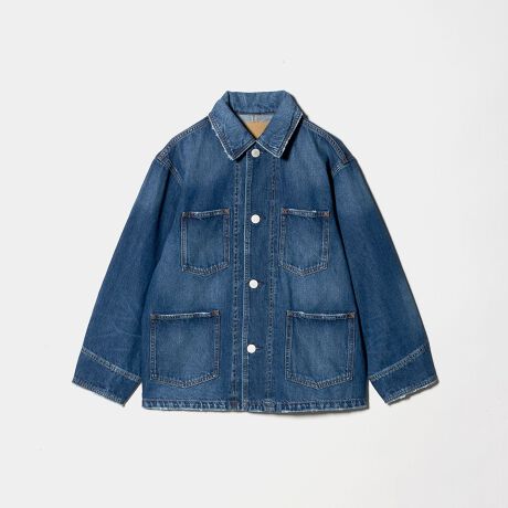 ヴィンテージのカバーオールを踏襲したオーバーサイズのデニムジャケットを、女性が着やすいサイズ感にバランスを調整しました。