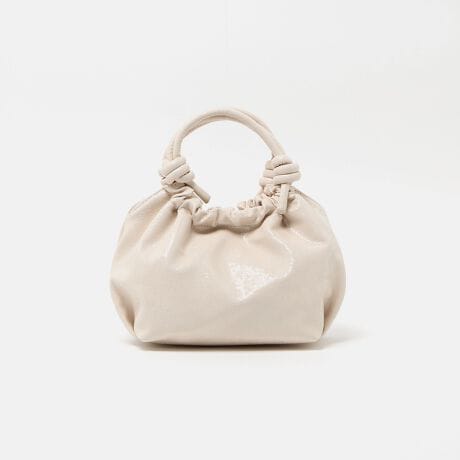 さりげない華やぎを添えるカラーと、表情感豊かな素材に馴染んだ装飾的なノットハンドルが印象的です。