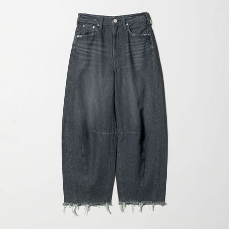 シルエットと加工感で差がつくカーブデニムパンツ