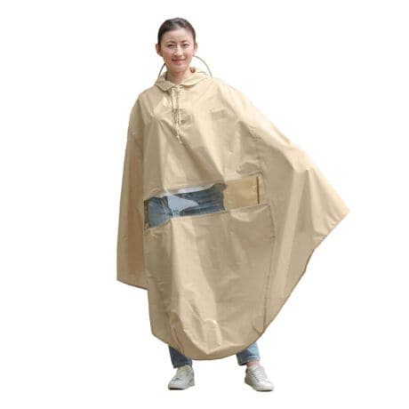 【自転車通勤の強い味方】バイザーで顔濡れ知らず、荷物も守る自転車屋さんのバイザー付きポンチョ。【硬質バイザーで顔を守る】長め設計のクリアなバイザーが雨から顔をしっかりガードし、メイク崩れの心配も軽減♪【耐水圧10,000mm以上】検査済みの高い撥水性能で、通勤通学時の急な雨にもしっかり対応できる頼もしさ◎【透明窓で手元が見える】ポンチョを脱がずにスイッチパネルや変速操作ができて、走行中の使い心地がストレスフリー!【ヘルメット併用OK】フードを被った上からヘルメットを着用でき、リュックごと雨から守れる実用的な設計〇【前カゴまでカバー】かごフック付きでバタつき防止。前カゴまですっぽり覆える自転車用仕様!【広い視界を確保】透明度の高い素材で雨天時も視界がクリア。安全な走行をサポートします〇【フィット感調整可能】フードひもと角度調整ファスナーで自分の頭にぴったり合わせられ、走行中に脱げにくい快適さ◎【反射マークで夜も安心】胸元と背中の反射マークが夜間でも視認されやすく、暗い道でも安全に走行できる♪