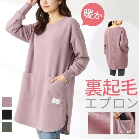 【冬の家事を快適に】裏起毛の暖かさと機能性を兼ね備えた長袖エプロン【裏起毛であたたか】寒い季節の家事も快適に、裏起毛素材が体を優しく包み込む暖かさ♪【袖リブで水仕事も安心】袖口のリブが手首にフィットし、皿洗い中も袖がずり落ちない快適設計!【大きめポケットが便利】スマホやハンカチがすっぽり入る正面の2つのポケットで家事効率アップ〇【動きやすいシルエット】身幅ゆったりだから重ね着もしやすく、長時間着ていても疲れにくい。