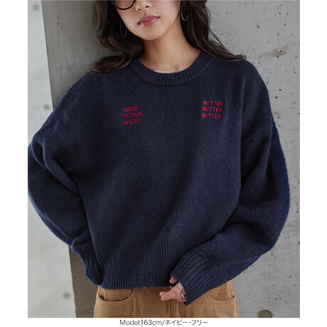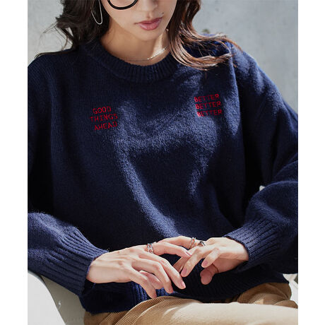 バイカラーのロゴ刺繍で可愛いアクセントをプラスした、一枚でも印象的な長袖トップス。