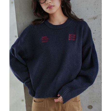 バイカラーのロゴ刺繍で可愛いアクセントをプラスした、一枚でも印象的な長袖トップス。
