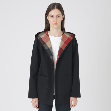 ブランドアイコンのクレストブリッジチェックをスクリーンプリントした、リバーシブルで楽しめるフード付きコーディガンです。