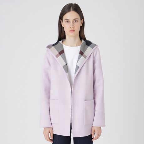ブランドアイコンのクレストブリッジチェックをスクリーンプリントした、リバーシブルで楽しめるフード付きコーディガンです。
