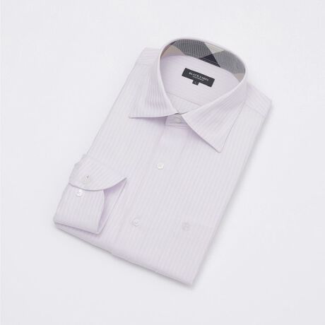 シャドーストライプ柄のセミワイドカラーシャツ。組織を組み合わせて織り上げることで上品な光沢のある1着に仕上げています。台衿裏にアイコニックなクレストブリッジチェックを使用した付加価値の高い1着です。