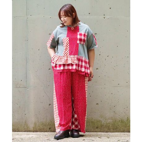 一見クセ強めな柄たちを組み合わせながら、驚くほどキュートにまとまった“楽しい切替カーブパンツ”が登場です。