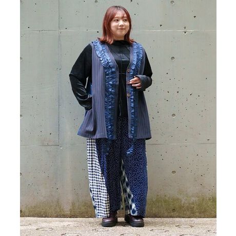一見クセ強めな柄たちを組み合わせながら、驚くほどキュートにまとまった“楽しい切替カーブパンツ”が登場です。