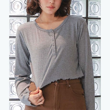 コンパクトヘンリーネックロングスリーブトップス