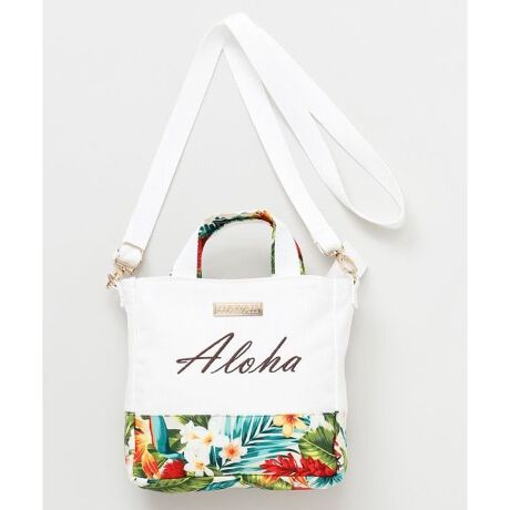 [型番:42LP6112-2026]ハワイから輸入したカラフルな生地を使用した2WAYミニトート。ショルダーベルト付きでトートにもショルダーにもアレンジ可能。中には仕切りがあり使いやすい設計。コンパクトながら収納力があり、旅先にもぴったりなリゾートデザイン。