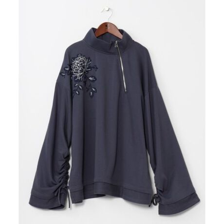[型番:COT-6106-2026]東洋の美と西洋の感性が融合した「シノワズリ」の世界観を纏うトップス。牡丹(ぼたん)の花を大胆にプリントし、銀糸の刺しゅうがさりげない輝きを添える一枚。斜めのハーフジップや異素材切り替えなど、細部まで個性が光ります。