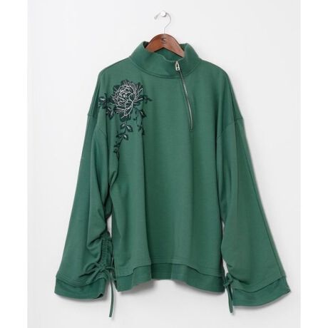 [型番:COT-6106-2026]東洋の美と西洋の感性が融合した「シノワズリ」の世界観を纏うトップス。牡丹(ぼたん)の花を大胆にプリントし、銀糸の刺しゅうがさりげない輝きを添える一枚。斜めのハーフジップや異素材切り替えなど、細部まで個性が光ります。