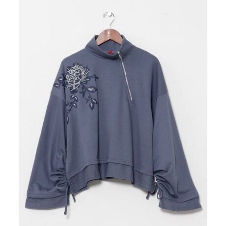 [型番:COT-6105-2026]東洋の美と西洋の感性が融合した「シノワズリ」のエッセンスをまとった個性派トップス。牡丹(ぼたん)プリントと銀糸の刺しゅうが目を惹き、裏毛素材の表情を活かした切替でレイヤード風に見せる工夫も。袖口のドローコードでシルエットに変化もつけられる一枚。