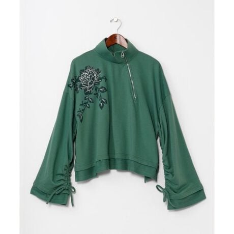 [型番:COT-6105-2026]東洋の美と西洋の感性が融合した「シノワズリ」のエッセンスをまとった個性派トップス。牡丹(ぼたん)プリントと銀糸の刺しゅうが目を惹き、裏毛素材の表情を活かした切替でレイヤード風に見せる工夫も。袖口のドローコードでシルエットに変化もつけられる一枚。