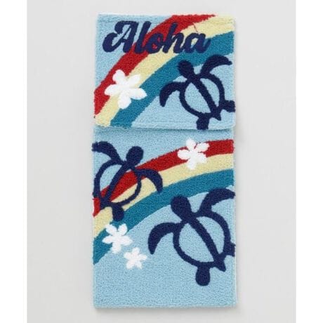 [型番:45WP6105-2026]ハワイの守り神ホヌと明るい虹が描かれたロールペーパーホルダー。優しい色合いと立体的な刺しゅうが魅力です。トイレ空間を明るくしてくれるハワイアンデザイン。