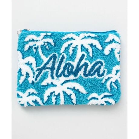 [型番:45WP6103-2026]爽やかなカラーのサガラ刺しゅうがポイントのポーチ。ふっくらとした立体感が可愛らしく、コスメや小物の収納にぴったり。ハワイらしい明るい印象で、バッグの中でも気分が上がるアイテム。