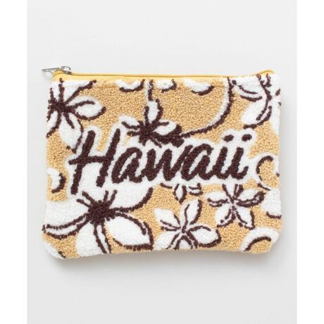 [型番:45WP6103-2026]爽やかなカラーのサガラ刺しゅうがポイントのポーチ。ふっくらとした立体感が可愛らしく、コスメや小物の収納にぴったり。ハワイらしい明るい印象で、バッグの中でも気分が上がるアイテム。