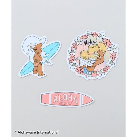 [型番:4JDP6101-2026]【Kahiko×Aloha Mapua】サーフィンとファッションを愛する、365日ハワイを感じられるキャラクター「ALOHA MAPUA(アロハマプア)」の3枚セットステッカー。スマホケースやPCに貼って、自分らしいハワイ気分をプラス。